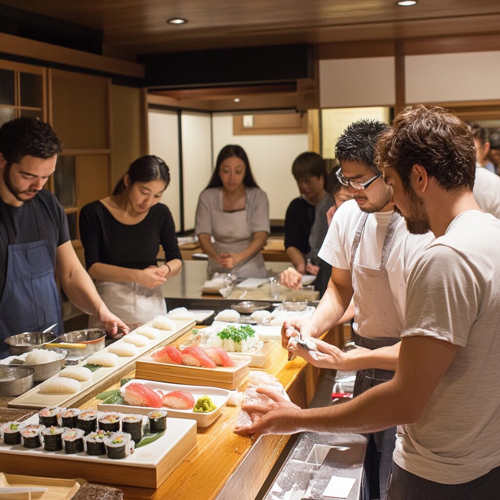 Fresh fish and vinegared rice are combined and made by hand. A sushi master will carefully teach you how to make the sushi and the steps involved.